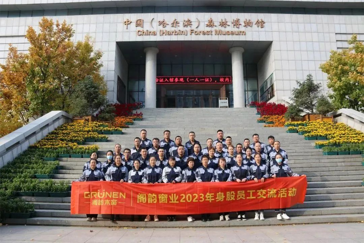 為更好的關(guān)注員工職場生態(tài),助力個人成長,開拓行業(yè)視野,營造健康工作環(huán)境,2023年10月13日,閣韻窗業(yè)一年一度的身股員工交流活動如期舉行?;顒悠陂g,閣韻全體身股員工共同參觀了“中國(哈爾濱)森林博物館”。參觀過后,身股員工針對本次參觀活動以及閣韻未來的發(fā)展各抒己見,希望以己之力,更好的助力公司前行。
